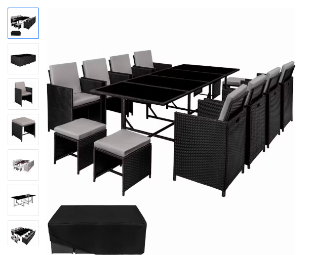 tectake Conjunto de rattan Palma composto por 8+4+1 - preto/cinzento